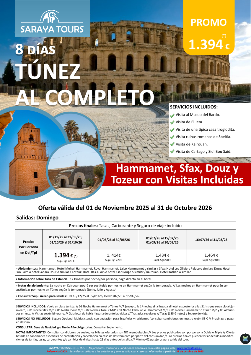 Túnez al Completo 8 días: Circuito con Visitas Incluidas hasta Octubre 26
