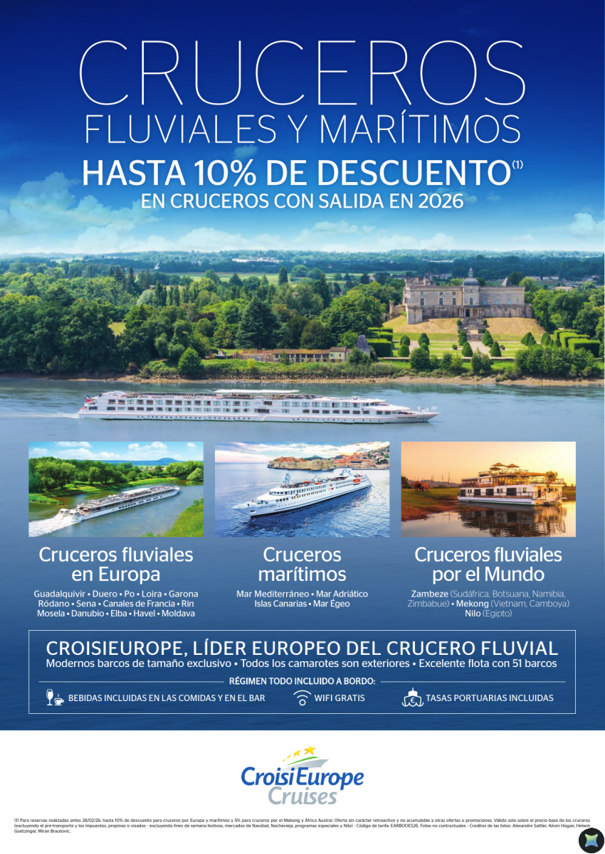 Hasta 10% DESCUENTO en cruceros fluviales y marítimos CroisiEurope para 2026